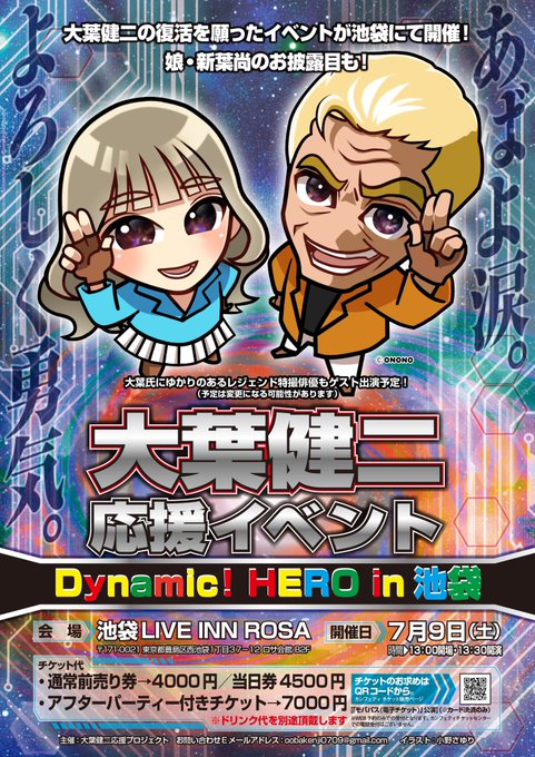 尊敬する大好きなギャバンこと、大葉健二さん復活を願ったイベントのポスターイラストを描かせていただきました✨ イベントは7月9日開催✨ 娘の新葉尚ちゃんのお披露目も! 5月14日よりチケットの販売開始✨ あばよ涙よろしく勇気! confetti-web.com/detail.php?tid… #ONONO #ぷちヒーローちゃん #ちゃんぷち