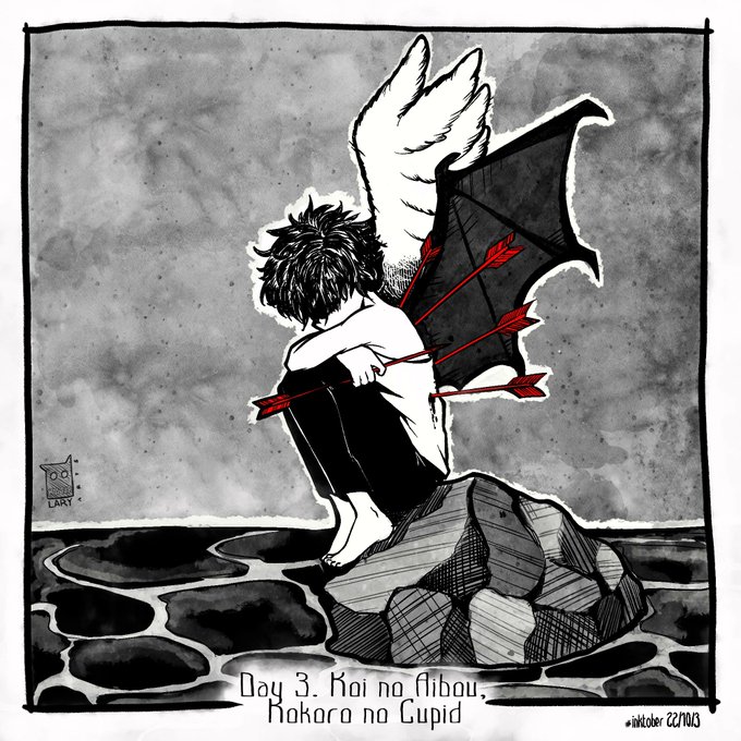 day 3. Koi no Aibou, Kokoro no Cupid 出会いと別れの狭間で人は 突然悪魔に あなたに悲劇が来る覚悟は?自らの力で 感情調節 #inktober2022 #ONEOKROCK #OORber #Inktober
