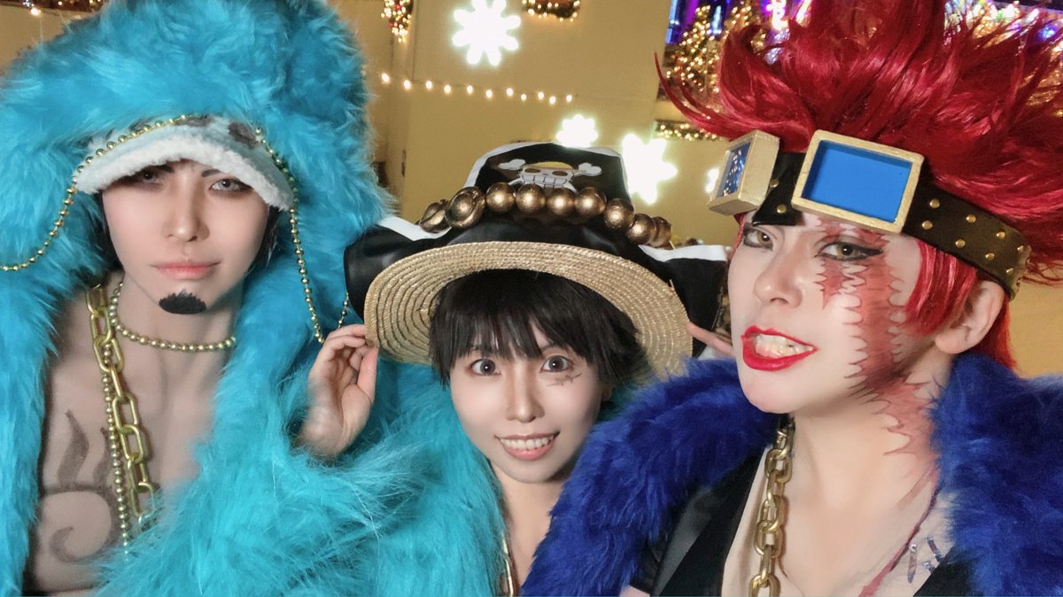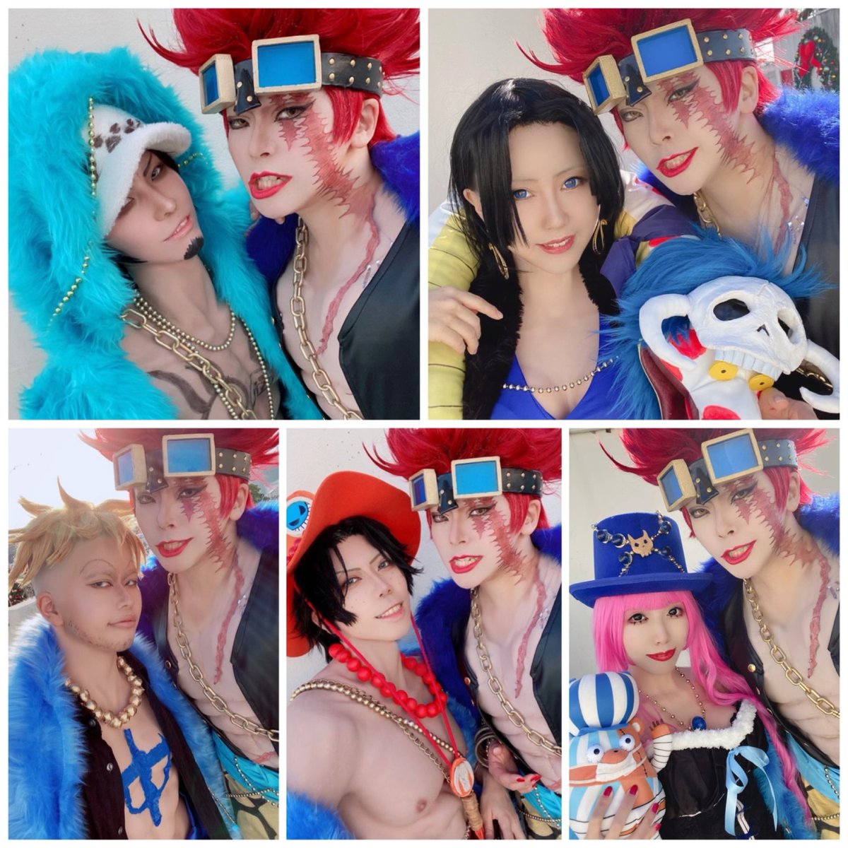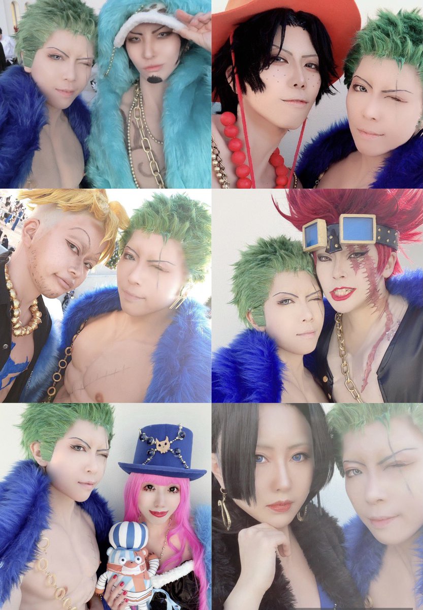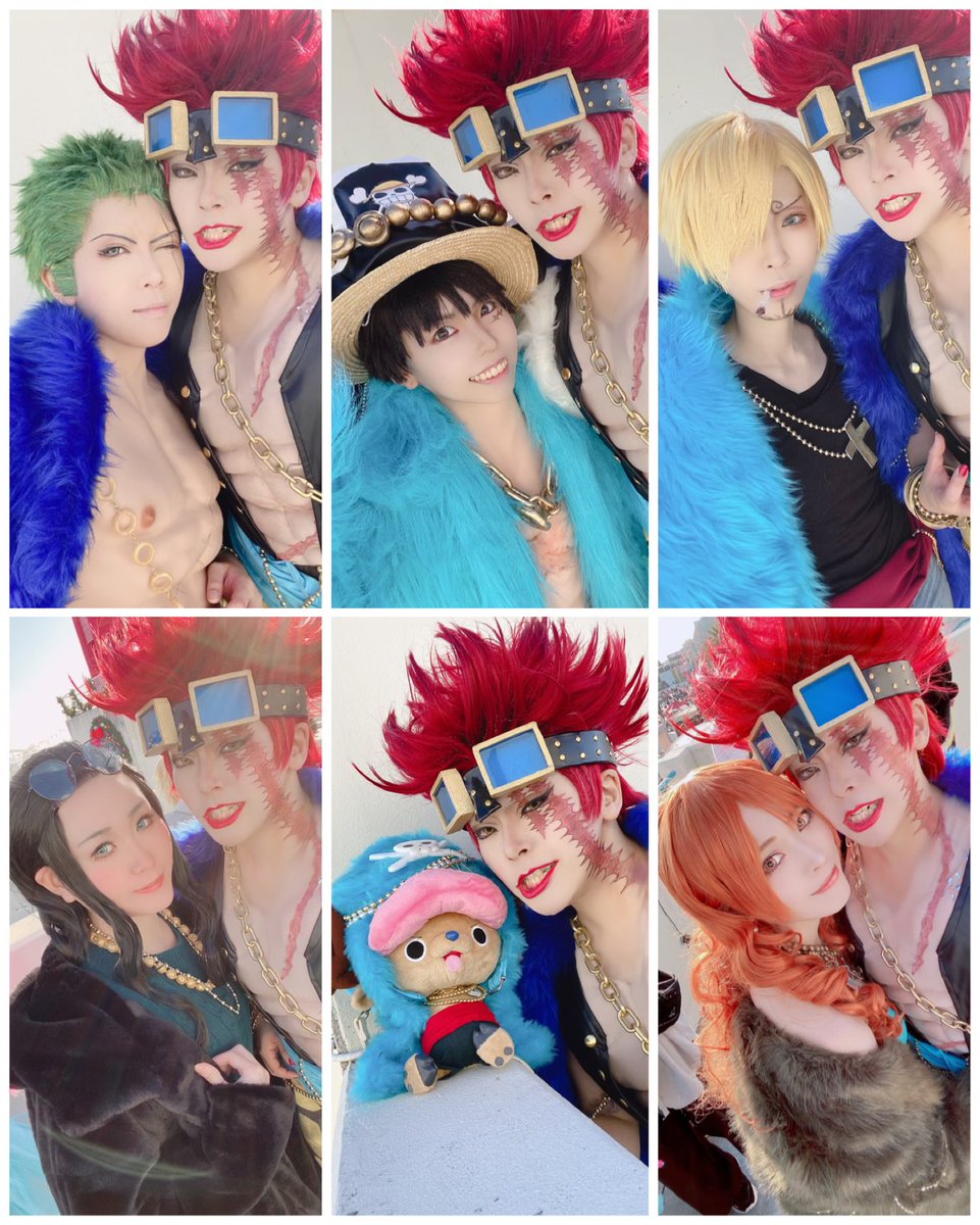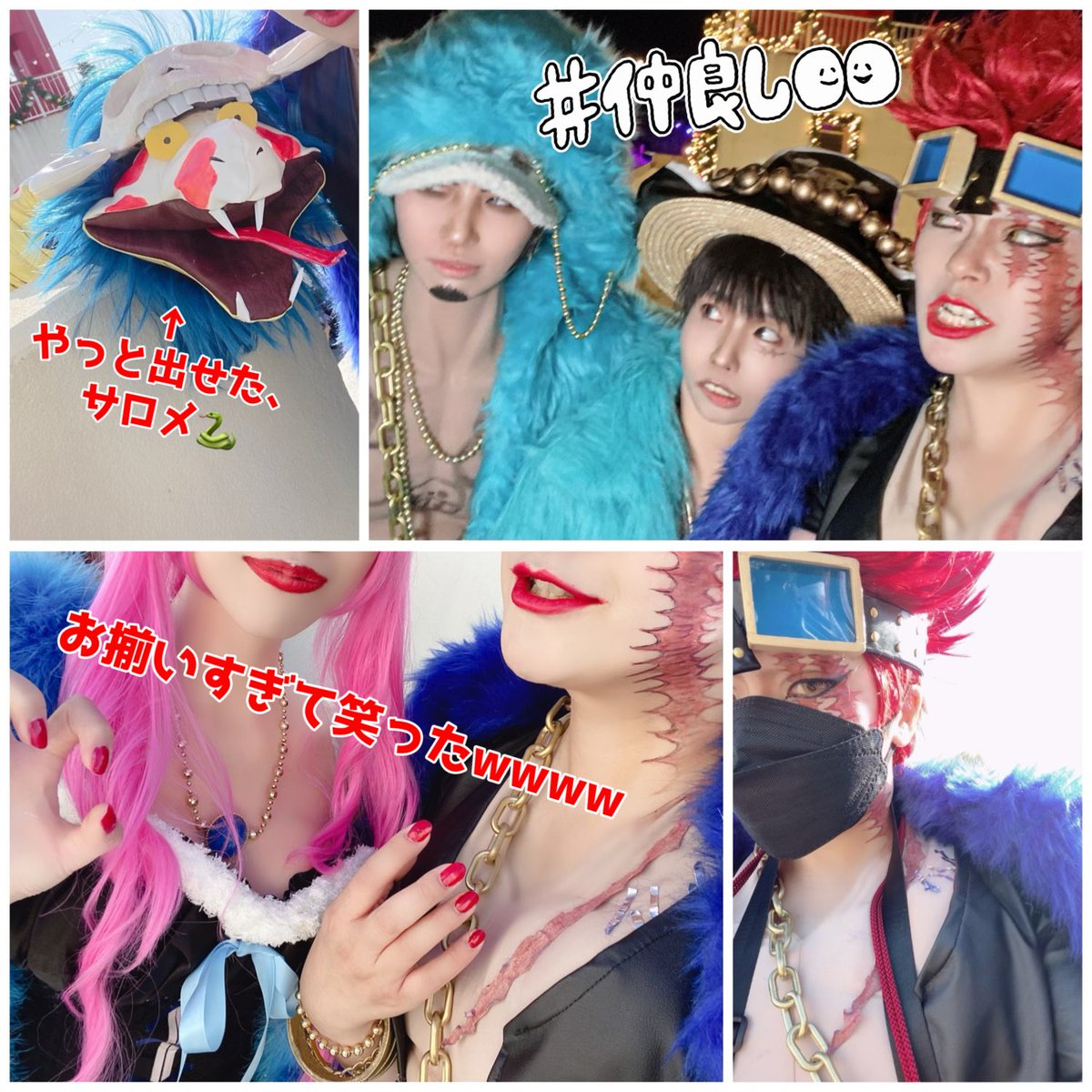 ツーショとか!!大変な衣装を準備してくれて、貴重なお時間をありがとうすぎた💙😭 🐯🐍🍍🔥👻⚔👒🕒📚🌸🍊最高だから見てほしい!!イケメンと可愛い子たち!!幸せなグリだった…… #OP20thもふもふ合わせ #ラグコス2021