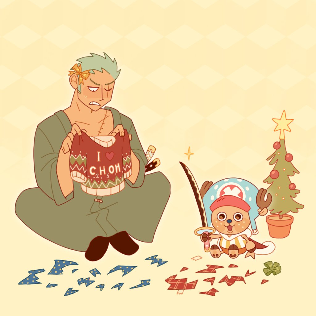 Secret Santa for @artisiie ! Zoro & Chopper exchanging gifts, with Chopper giving Zoro a selfmade sweater!! #OPSecretSanta #Christmas2021 #ONEPIECE