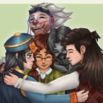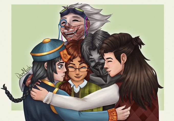 Já disse o @HomemGafanhoto uma vez: Se tem fanart é cânon. Logo esse abraço em grupo rolou sim obrigada de nada ❤️ . . Fanart do grupo maravilhoso de #OSpeedrunNaFloresta rpg no universo de #OrdemParanormal #ordemparanormalfanart