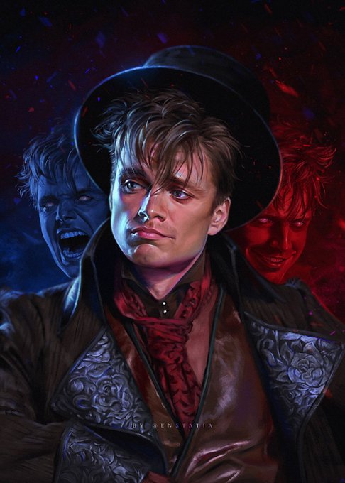 #BuckyBarnes and Hook mashup was published two weeks ago, and I keep getting comments that he's actually Mad Hatter from #OUAT. I thought I should reply to all those comments with a portrait of Sebastian as Jefferson😊🎩 #ArtistOnTwitter
