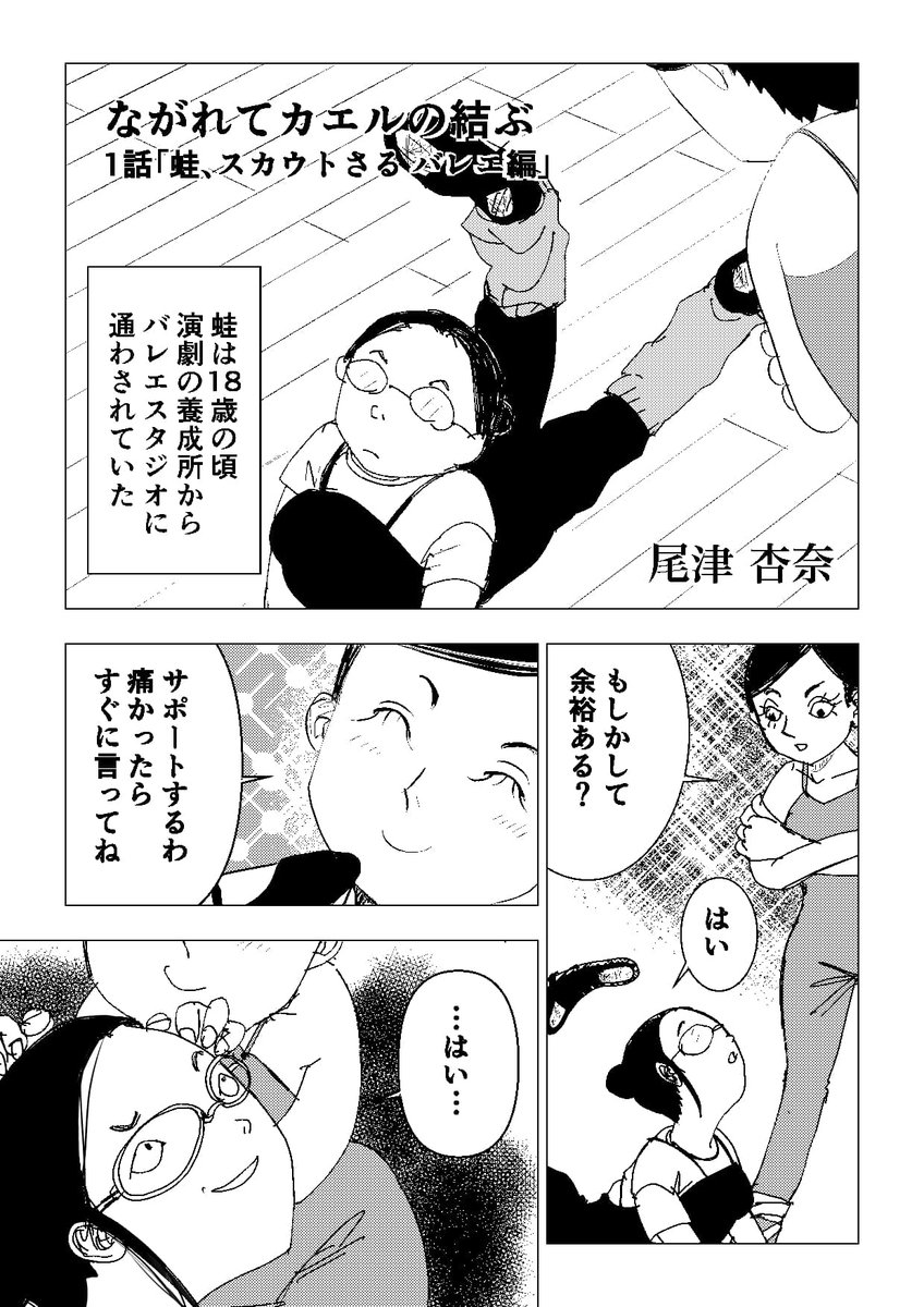 #漫画が読めるハッシュタグ #エッセイ漫画 #ながれてカエルの結ぶ 第1話「蛙、スカウトさる バレエ編」 #尾津杏奈 デジタルで初めてマンガを描いた。 成人してからは全く描いてないからなぁ。リハビリリハビリ。 #OZAnnArt