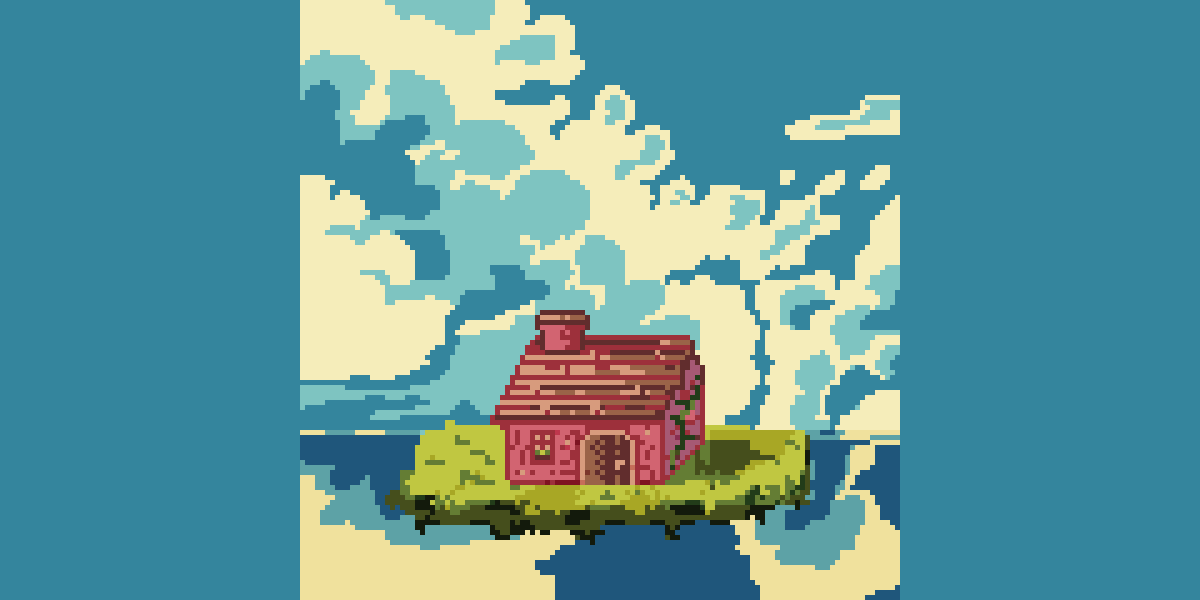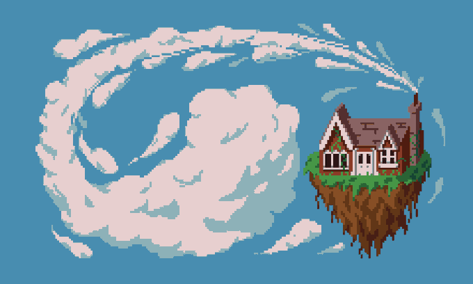 [29]My first attempt of drawing a #ObliqueHouse! "How would it be to live in a house in the sky?" |@Pixel_Dailies | #Pixel_Dailies | #pixelart | #ドット絵 | #픽셀아트 | #pixelartist |