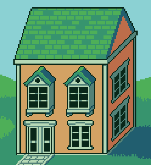 old townhouse #ObliqueHouse #pixel_dailies @Pixel_Dailies #pixel_art #pixelart (can you tell where I got tired?)