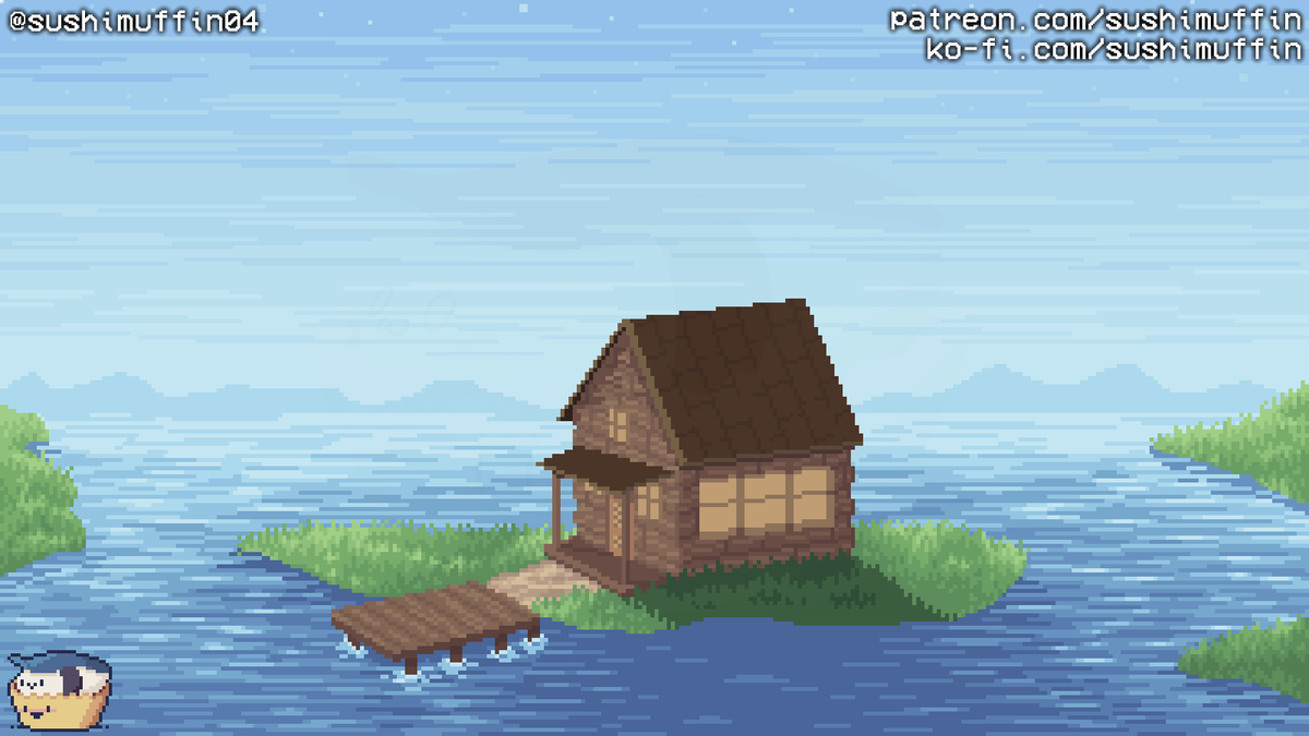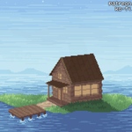A cozy #ObliqueHouse on an island in the lake (don't ask me why they have their lights on in the middle of the day) #pixelart #pixel_dailies @Pixel_Dailies #aseprite #ドット絵