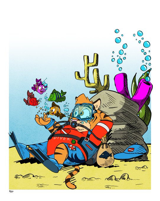 It's time for Elf to relax underwater while feeding the fish after training many people 😊 🐯🤿🐟 #scuba #diving #scubadiving #tiger #fattiger #furryart #antroart #underwater #fish #elfthetiger #myoc #occharacter #digitalart #digitaldrawing #scubatiger #relax #relaxunderwater