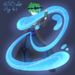Day 12 of #Newvember brings the second of Skylo's transformations! The Water Asterisk! Fluid movement in combat along with elemental help from the moisture around him, Skylo is never without a weapon in this form! #Digitalart #artistsontwitter #OcTwitterTakeover2022 #oc