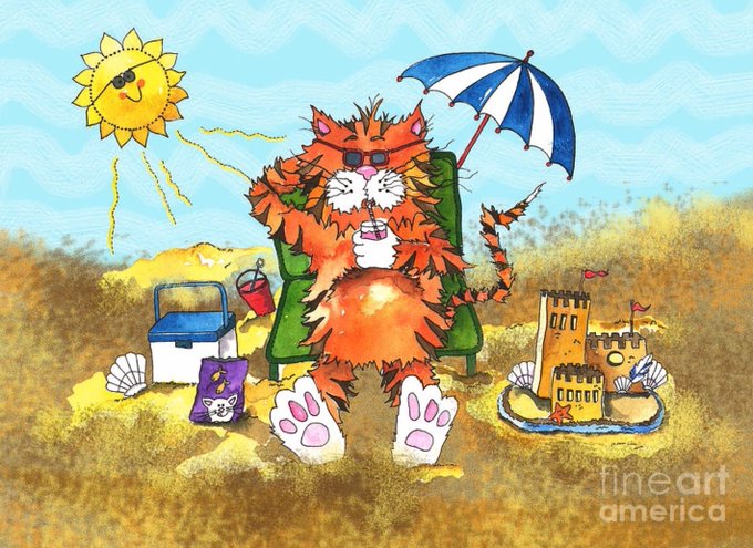 Be prepared! 🌞🐈🌞🐈 It’s the middle of July and the temperatures are definitely heating up! Cat at the Beach 👉 society6.com/art/cat-at-the… Link to my Society6 Shop 👉 society6.com/shelleyylstart #shelleyylstart #watercolor #watercolorpainting #watercolour #cat #beach #ocean #summer