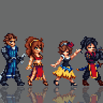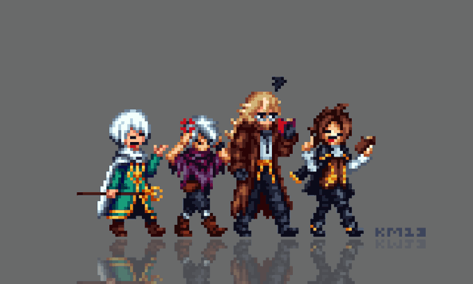 Osvald and Therion enjoying a nice conversation with Cyrus and Temenos #pixelart #OctopathTraveler #Octopath5thAnniversary #オクトラ5周年