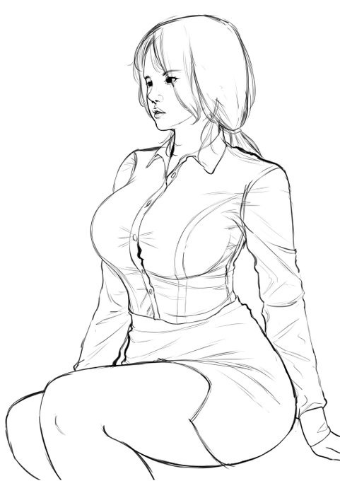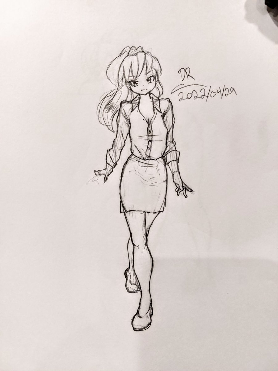 Another sketch I did yesterday. Vision and execution about on par with each other here, that level being somewhat mediocre. #anime #art #drawing #sketch #traditionalart #officelady #artistsontwitter #kawaii