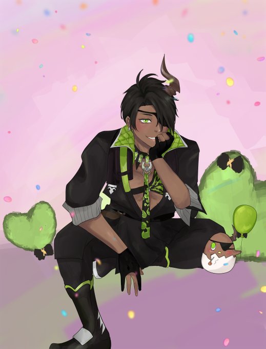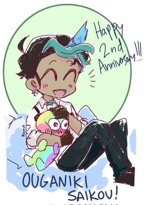 It is a messy drawing!! But it's okay. Because my feelings are messy too! おめでとうオウガニキ!!!🥰💚 これからも応援しています! #Oga2nd_anniversary #オウ画