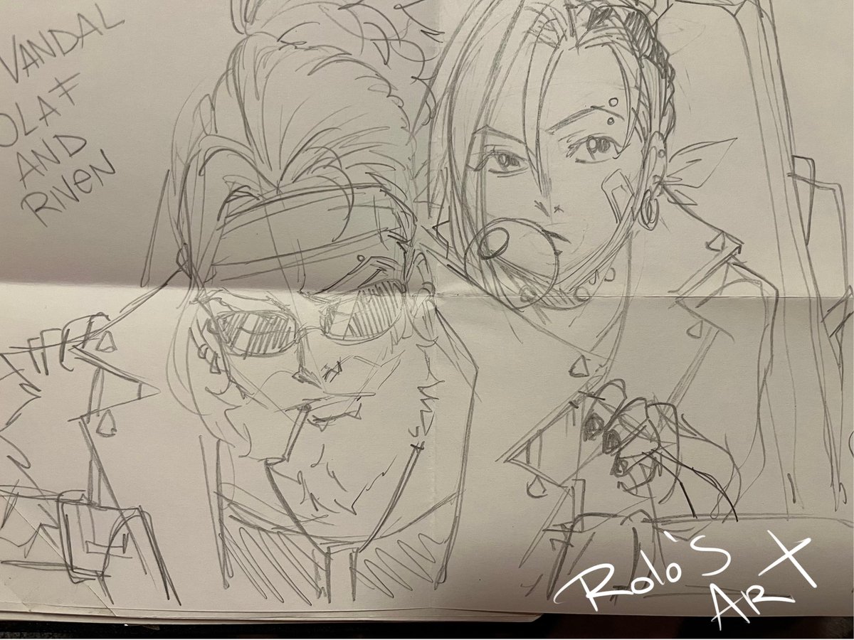 Sketch and final version - Olaf and Riven Vandals - #LeagueOfLegends #olaf #riven #ArtofLegends
