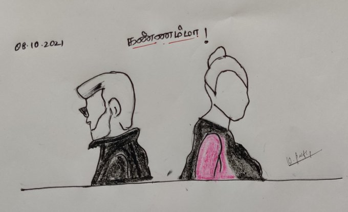 Day 8: Kannamma (Kaala) காயங்கள் ஆற்றும் தலைக்கோதி தேற்றும் காலங்கள் கைகூடுதே! தொடுவானம் இன்று நெடுவானம் ஆகி தொடும்நேரம் தொலைவாகுதே! #OliyumOliyumInktober #OliyumOliyumInktoberDay8 #inktober #inktober2021