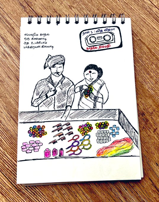 Art-Jam with @OliyumOliyumInk I’ve no idea about this song but it was fun to kick-start #inktober with our Ganaa King Deva and thangam @iamanaesthete 🌻 Day 1 : Vitha Vithamaa Composer : Deva #OliyumOliyumDay1 #OliyumOliyuminktober #OOIPrompt2022