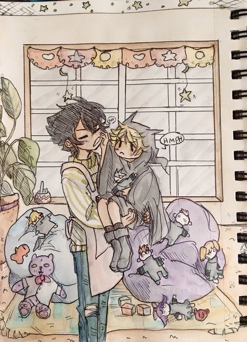 Every time i put my watermark i feel like playing “I spy”— anyways i missed drawing yuu on his birthday so i drew #ONS to make up for my guilty conscience lol Day 19: hyakuya orphanage but mika is baby demon Day 20-21: college AU #inktober2021