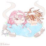 Ouma Shuuuuuuu and Yuzuriha Inoriiiiiiiiii, my room was warm like an onsen so I drew this. Today I learnt Inoris robot is called fyu-neru like their team name funeral parlor #inktober2021day18 #inktober #inktober2021 #inori #yuzurihainori #oumashu #onsen #fyuneru