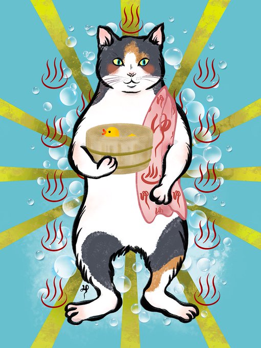 リフレッシュしませんか♨️🛁 Refresh your body & mind? #cat #onsen #drawing #procreate #painting #ねこ #絵描きさんと繋がりたい