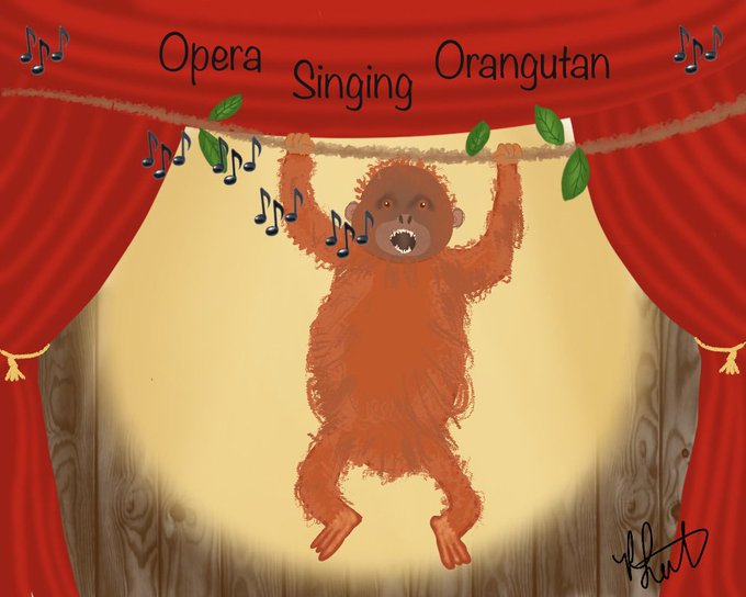 Orangutan singing opera for this week’s #AnimalAlphabets @AnimalAlphabets #illustration #kidlitart #kidlit #orangutan #opera #singing #cute #funny #animals #picturebook #childrensbooks #animal #nature #art #painting #drawing #sketching #artistontwitter #artist #HappyMonday