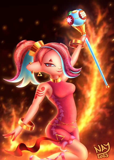 Goddess of Power: Shiver! ❤️🔥 A belated congratulations to team power for winning the zelda splatfest #Splatoon #Splatoon3 #splatoonart #LegendofZelda #oracleofseasons #din #ArtistOnTwitter
