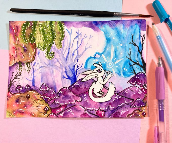 Ori and the Blind Forest #watercolor commission I recently finished.💜This 1 was such a fun challenge!🎨 #oriandtheblindforest #ArtistOnTwitter #pastel #cuteart