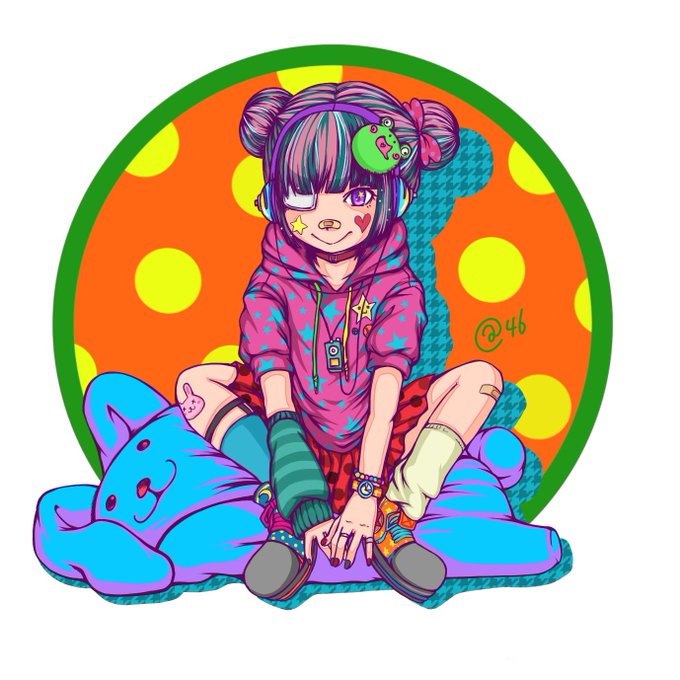 テーマはカラフルで可愛いカエル座りの子♡ですw #オリジナルイラスト #OriginalIllust #イラスト好きさんと繋がりたい #絵描きさんと繋がりたい #絵柄が好みっていう人にフォローされたい