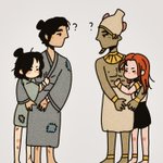 still day 1, modern au i just think baby Anubis deserves 2 dads, as a treat 💚🖤❤️ i drew Osiris's hair based on hints in the manhwa...i guess that it's wavy at least! #enneadweek2022 #ennead #osiseth
