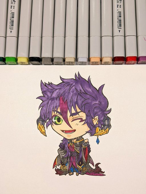 CHIBI MISYR COMPLETE‼️💜✨ It only took five rounds of work 😆 Today's finishing livestream can be replayed here: twitch.tv/studiomikarts/… #CafeEnchante #OtomeArmada #Illustration #イラスト #Drawing #お絵描き #Twitch #ChibiFriday #Marker #ColoredPencil #Ink