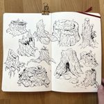 Tree stumps: the colored one is a study from a photo I took, the other ones are from imagination 🌱 Do you enjoy drawing from reference or imagination more? #sketch #sketchbook #inkdrawing #natureart #illustration #draw #natureillustration #tree #art #sketchdaily #overgrown