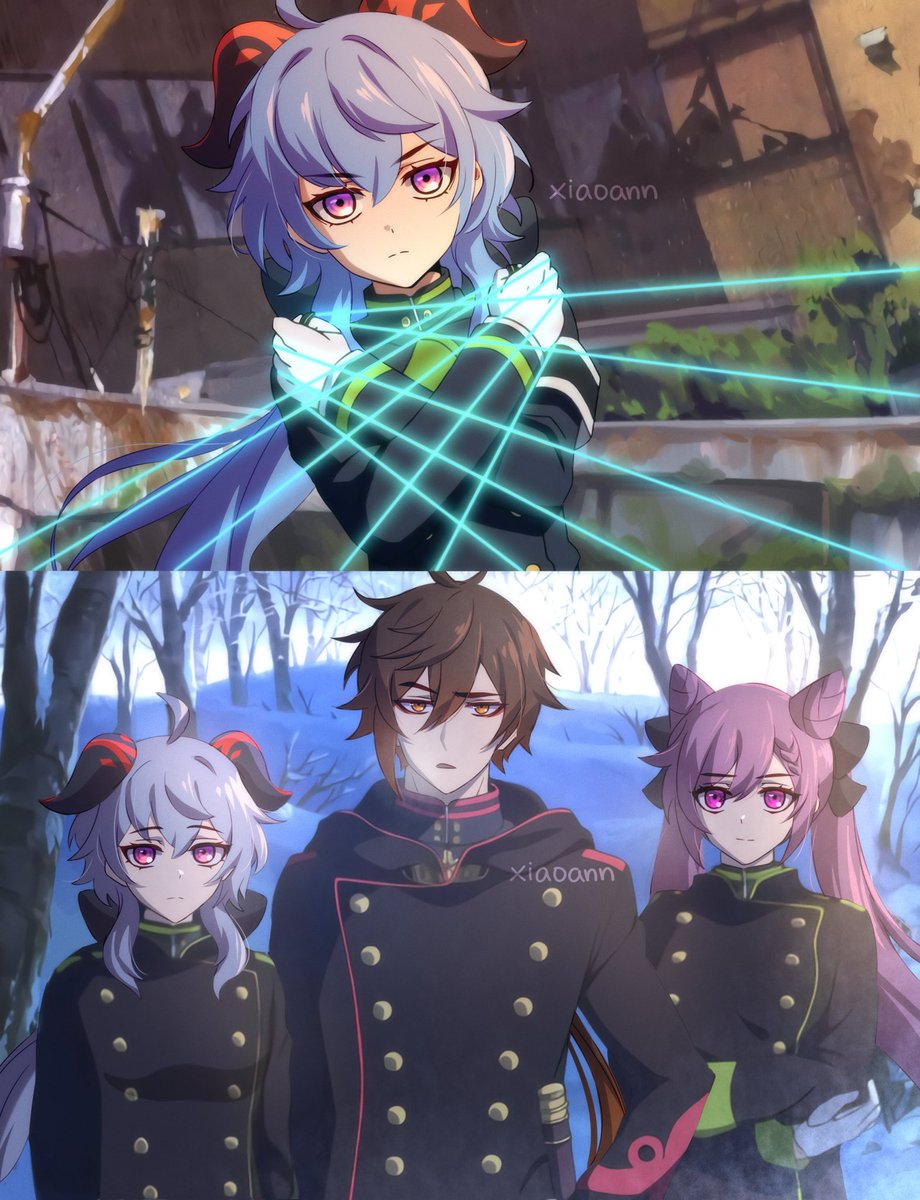 Owari no Seraph x Genshin Impact scene redraw part 16 with Ganyu as Shigure Yukimi (feat. Zhongli and Keqing!) 🐏❄️🗡️🩸#GenshinImpact #Ganyu #Zhongli #Keqing #OwariNoSeraph #原神