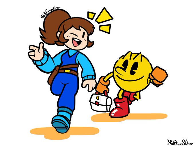 One year later.... they became friends! On a side note, I quite improved a lot mimicking the art styles after the first post, but drawing Pac-Man was a little difficult though. #PacMan #Annalynn #indiegame #Namco #BandaiNamco #artshare #ArtistOnTwitter twitter.com/NathusSilverus…