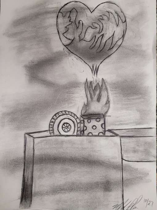 Day 27 Prompt: Spark Title: Eternal Spark of Love #Inktober #inktober2021 #Love #flame #zippo #PAD #PrimalArtDesigns #spark