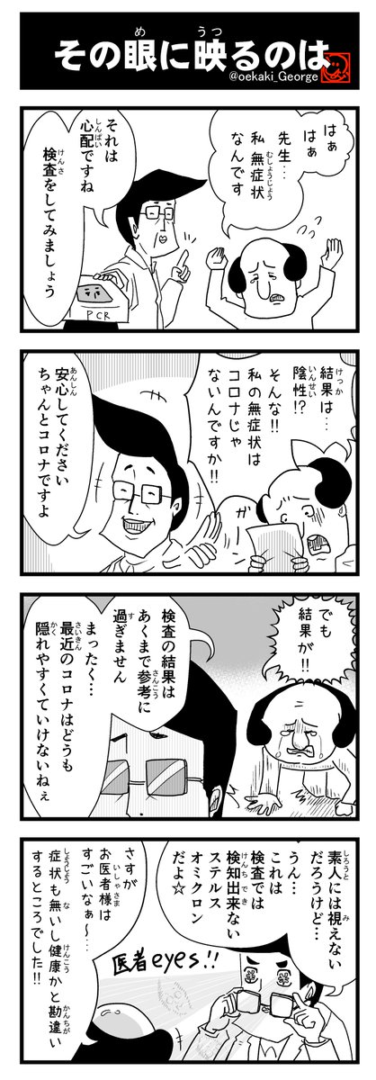お医者様の眼力も日々進化しています☺️ #ジョージの4コマ No376 「その眼に映るのは」 #4コマ #4コマ漫画 #コロナ #オミクロン #ステルスオミクロン #PCR検査 👼不定期メルマガ resast.jp/subscribe/1477… 💡イベント、最新情報一覧 smart.reservestock.jp/consecutive_ev…