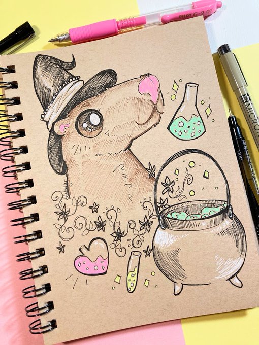Witchy capybara potions master! ✨For #inktober and #peachtober 💛 #witch #sketchbook #kawaii #cuteart