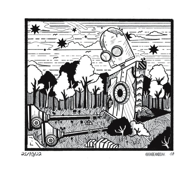 DAY 25. ROBOT #peachtober I don’t why but there’s something calming about a giant abandoned robot #peachtober22 #illustration #drawing #Inktober #October #drawingchallenge #artwork