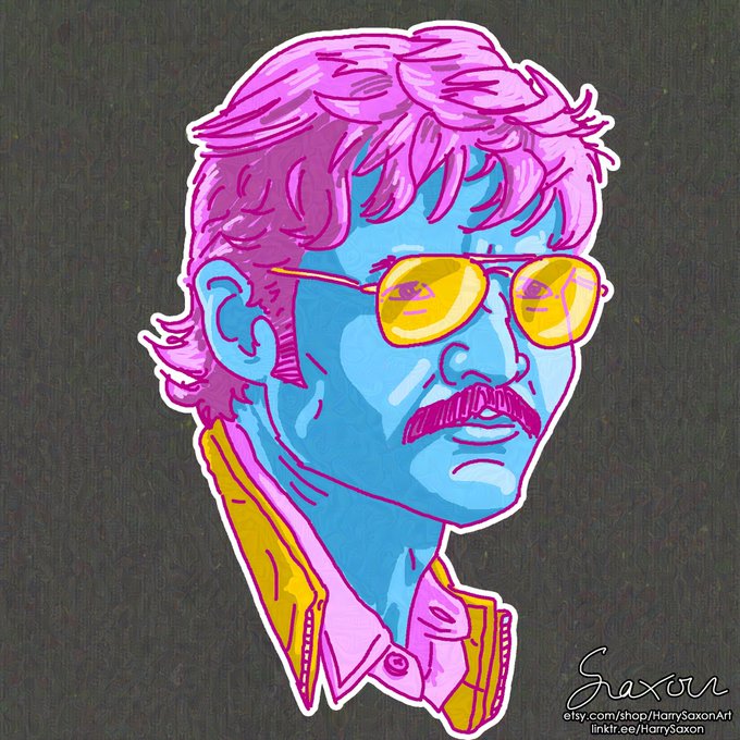 Ι had the idea to make various Pedro Pascal stickers. This is just concept art I've been playing with. Opinions? Also trying #Glaze for the first time, it's adding a weird texture, but I am ok with it #pedro #pedropascal #narcos #javi #javierpeña #illustration #stickers #noai