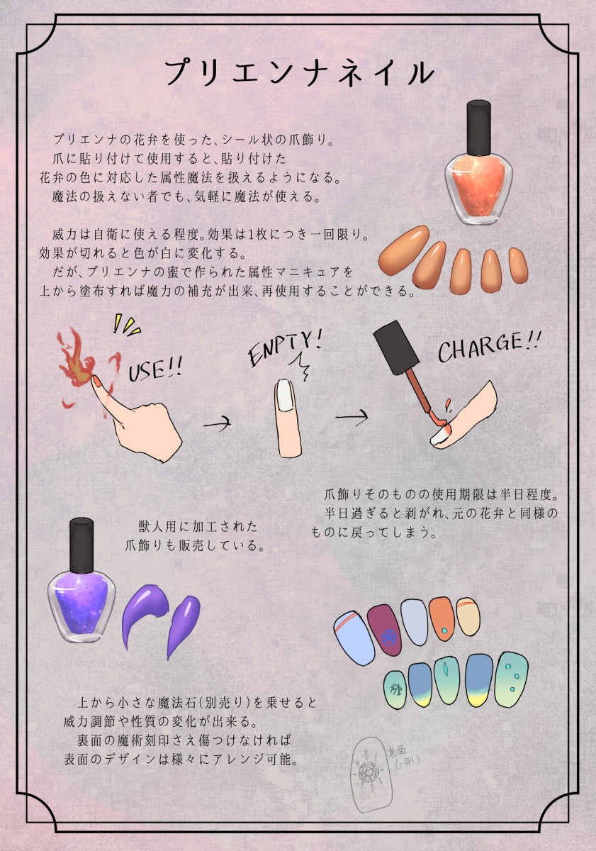 【PFSOZ】プリエンナ&プリエンナネイル【緑竜諸島の探索】 #pixivファンタジアSOZ #緑竜諸島の探索 #ミリオン商会 #PFSOZアイテム #PFSOZ植物 #PFSOZ道具素材 #魔法雑貨カンフォラ pixiv.net/artworks/10283…