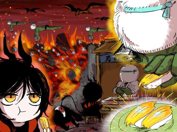 【PFSOZ】寿司ポンタタ戦場寿司キングポンタタ握り #pixivファンタジアSOZ #PFSOZ食料 #【ごはん悪魔】 #欺瞞の悪魔 #アラディア院 #【王都消火戦線】 pixiv.net/artworks/10363…
