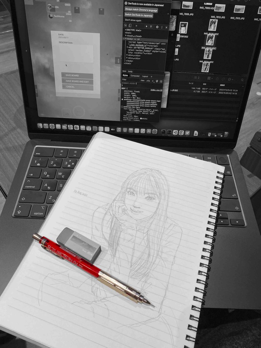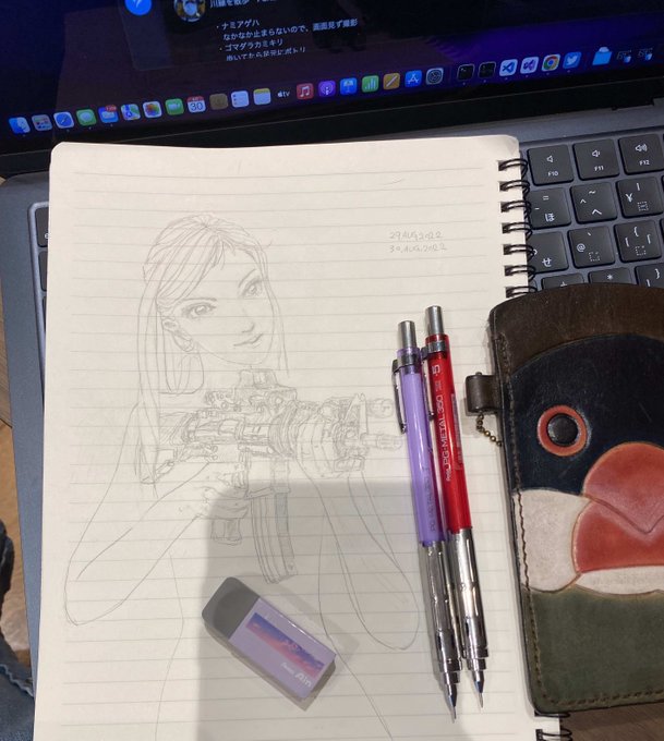 Pentel PG-METAL 350でラフに描いてみる Part4 描いてたら、映画 「海街Diary」 見たくなった (誰かバレますね) が、やっぱり吉田秋生さんの原作にしよ 気まぐれでスチール(白黒) PG-METAL350は赤のまま MACビューアで加工 #Pentel #PGMETAL350 #イラスト