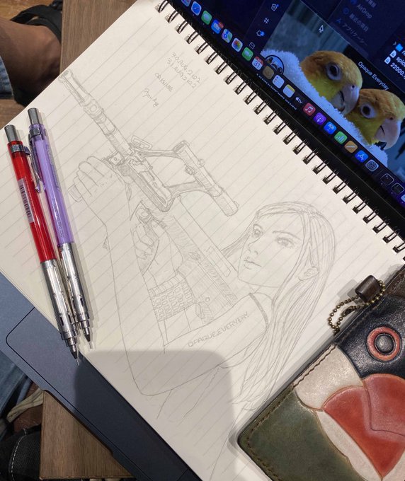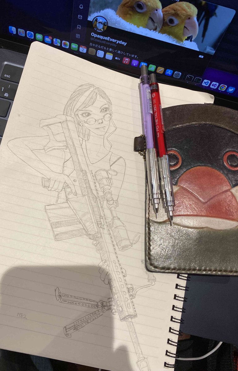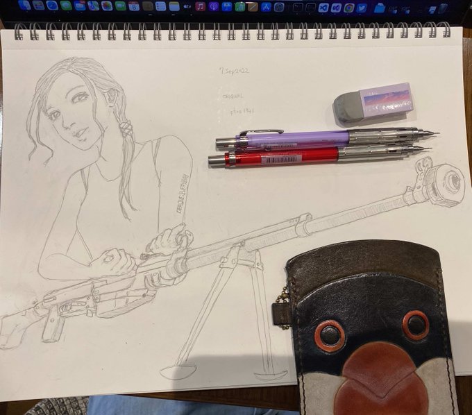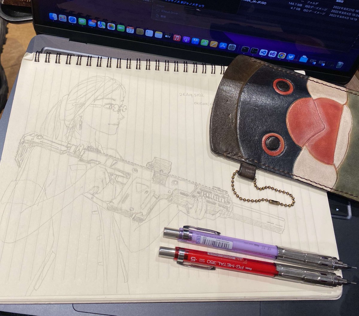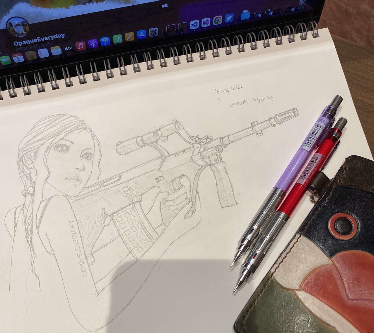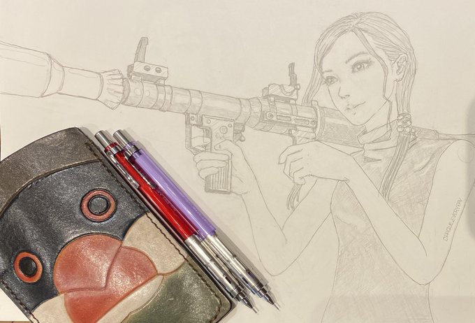 Pentel PG-METAL 350 Part15 Part15かぁ よく続くなぁ KINWA E E&C 333E-1 STRIKE Patriot PDW7 描いていたら欲しくなった でも電動なのでパス 所々レッドなのがポイント 着色失敗してますが… #Pentel #PGMETAL350 #イラスト