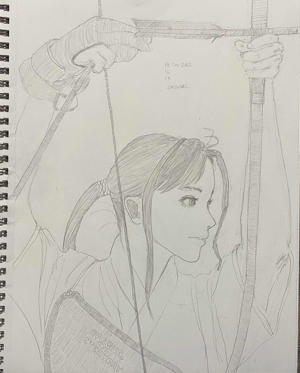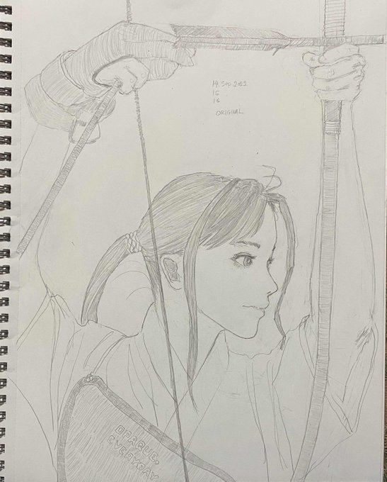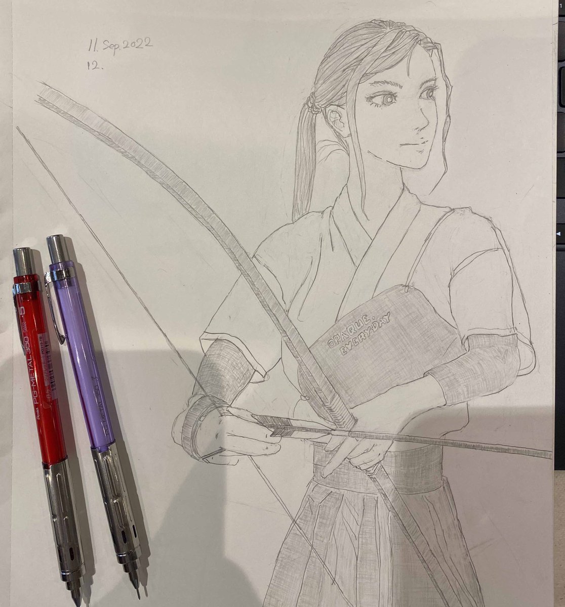 Pentel PG-METAL 350 Part34 射法八節「会」 矢を射る直前で5−6秒キープするらしい 弓の反発力で腕はプルプル こんな笑顔でいられない ずっと聴きながら描いてた (特に Run Wild ええなぁ) Guilty (1980) Babra Streisand youtube.com/watch?v=Id1RFv… #Pentel #PGMETAL350 #イラスト #弓道