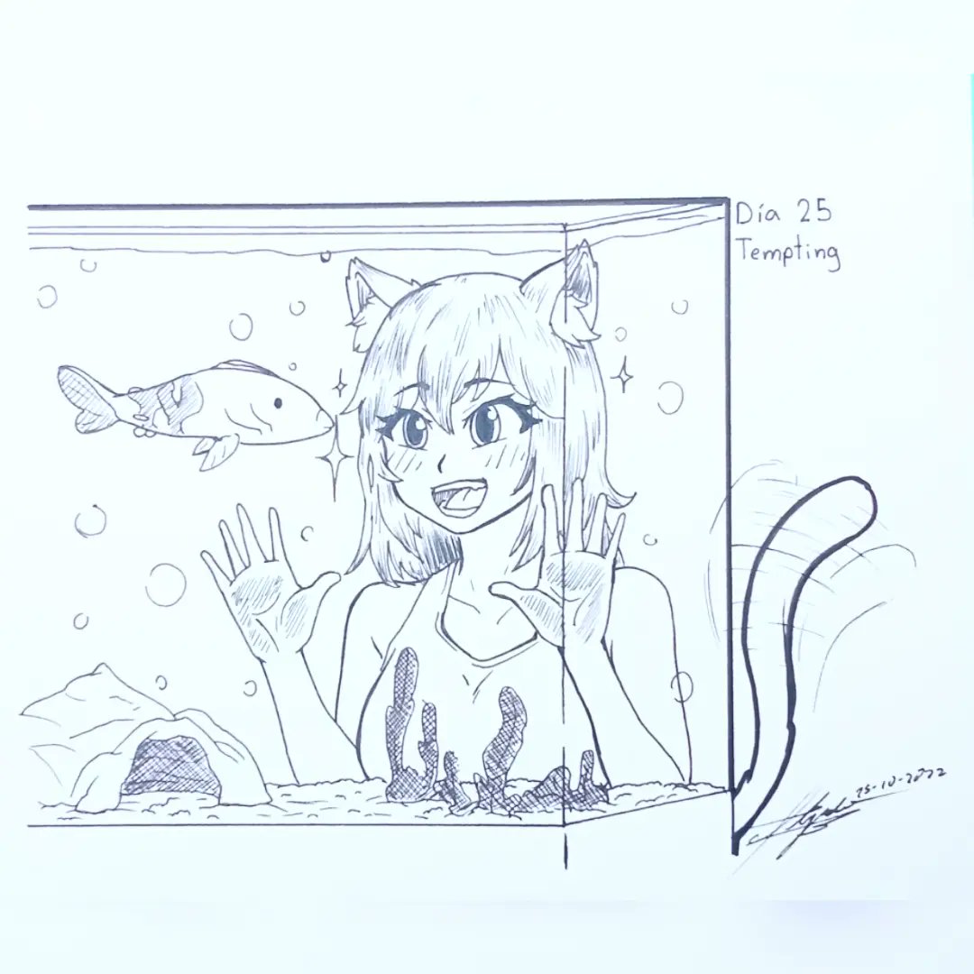 Nuevo día . Día 25 / Tema: Tempting ##Inktober #inktober22 #October2022 #challenge #marker #PIN #sketchbook #sketches #blacktober #whiterose #ocart #oc #ocs #cute #anime #animetwt #animegirl #thicc #thiccbutt #thiccthigh #thiccbottom #fypシ #fypage #catgirl #furryartwork #fish