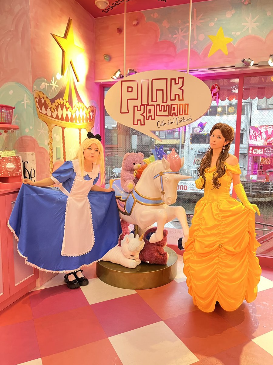⚠️cosplay すごく可愛いお店で優しいスタッフさんでした😆ありがとうございました ☕️ アリス るる@_ru_r_u 🥀 ベル 迦南丸@KANAmie0507 #PINKKAWAII #アコスタ道頓堀