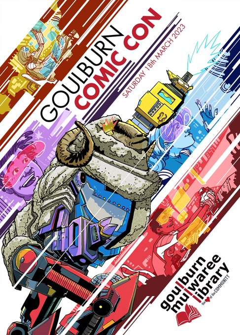 #GoulburnComicCon is back on this year! I can’t wait! I drew this poster for it a couple years back but yadda yadda covid yadda yadda. Sat 18th March, come along if ya can it’s gonna be raaad! 🐏🤖🤙#comics #popculture #mecha #drawing #illustration #nsw #goulburn