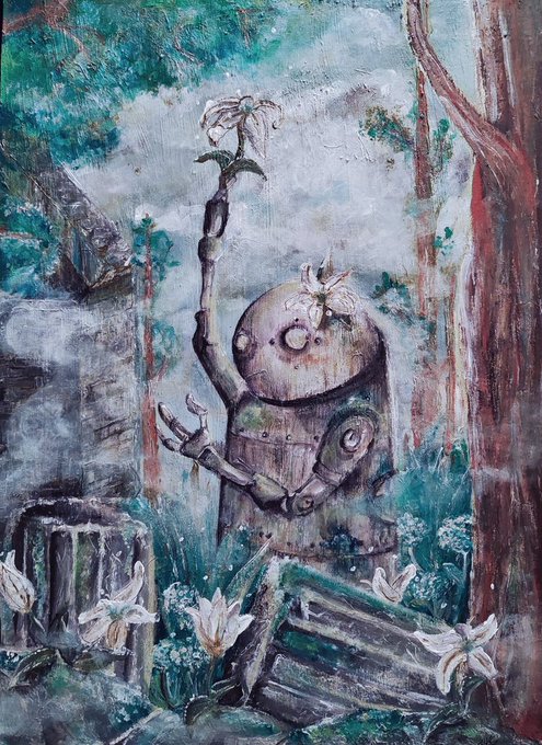 "Peaceful Sleep" Nier Automata A2// Acrylic colours and Gouache Canvas with Frame It's done - after two month i finished the painting!! #NieRAutomata #NieR #painting #paintings #art #ArtistOnTwitter #fanart #fantasy #game #SquareEnix #anime #manga #PopCulture #canvas