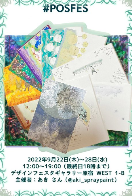 本日から始まります🧡🌿 日時🍂2022,9/22〜28 12:00〜19:00(最終日18時) 場所🍂デザインフェスタギャラリー原宿 WEST 1-B 主催 あき 様(@aki_spraypaint) 58名の作家様達のポストカードが一斉展示販売される企画展です。 是非足を運んで頂けたら嬉しいです☺️💐 #絵描きさんと繋がりたい #POSFES twitter.com/aki_spraypaint…