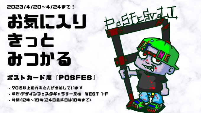 1ヶ月の開催となりますが あきさん@aki_spraypaint主催の POSFES vol.2に参加致します。 日時:2023年4月20日(木)〜24日(月) 12〜19時(最終日18時まで) 場所:デザインフェスタギャラリー原宿 WEST 1-F 今回は8種で出させて頂きます🎵 是非お越し下さいませ☀️ #POSFES #絵描きさんと繋がりたい twitter.com/aki_spraypaint…