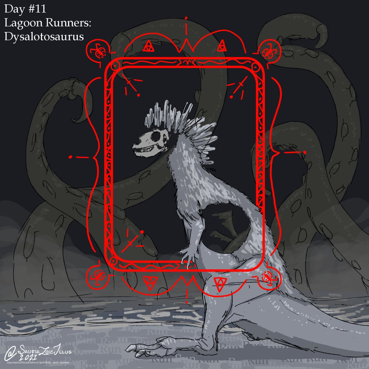 #PRDinovember2021 Day #11 Lagoon Runners: Dysalotosaurus . Ph'nglui mglw'nafh Cthulhu R'lyeh wgah'nagl fhtagn . #paleoart #paleontology #abstract #lovecraft #cthulhu