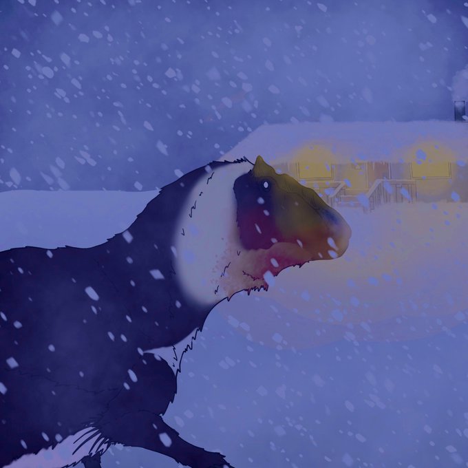 Day 5 of #PRDinovember2021. Unsated by the seal carcass found in the town dump, a disoriented Yutyrannus huali decides to investigate a strange light source as it navigates through Churchill, Canada. #yixianyeti #paleoart #paleoartist #Dinovember #digitalart