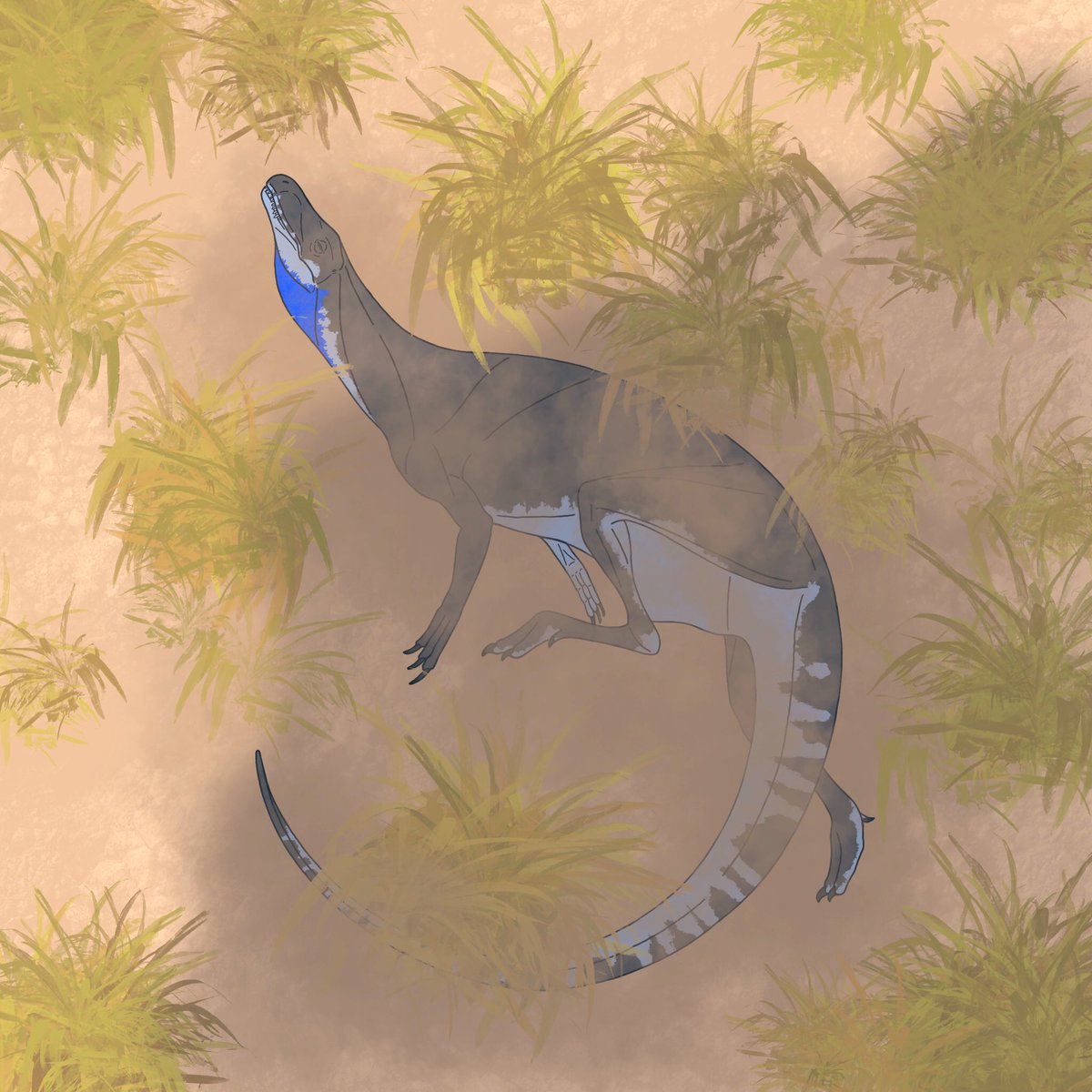 Day 6 of #PRDinovember2021. Gnathovorax cabreirai engages in an afternoon dust bath underneath the shade of a nearby tree. #paleoart #paleontology #Dinovember #Dinovember2021 #DigitalArtist #digitalart